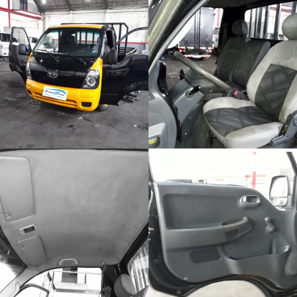 Teto da Cabine: Limpeza segura de todo o forro para eliminar a sujeira e o escurecido causado pela poeira e fumaça.