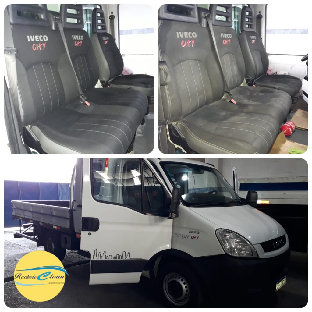 Bancos e Cama (Poltronas e Leito): Extração profunda para remover completamente o suor, a poeira e as manchas dos estofados onde o motorista trabalha e descansa.