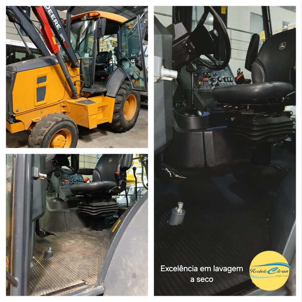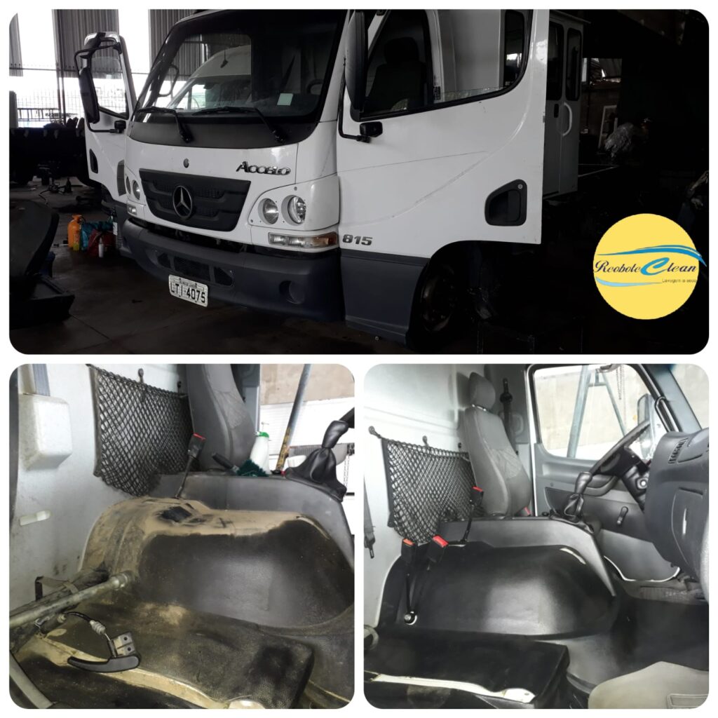 Carpete e Tapetes: Limpeza pesada do piso da cabine, removendo terra, resíduos e manchas de óleo ou graxa.